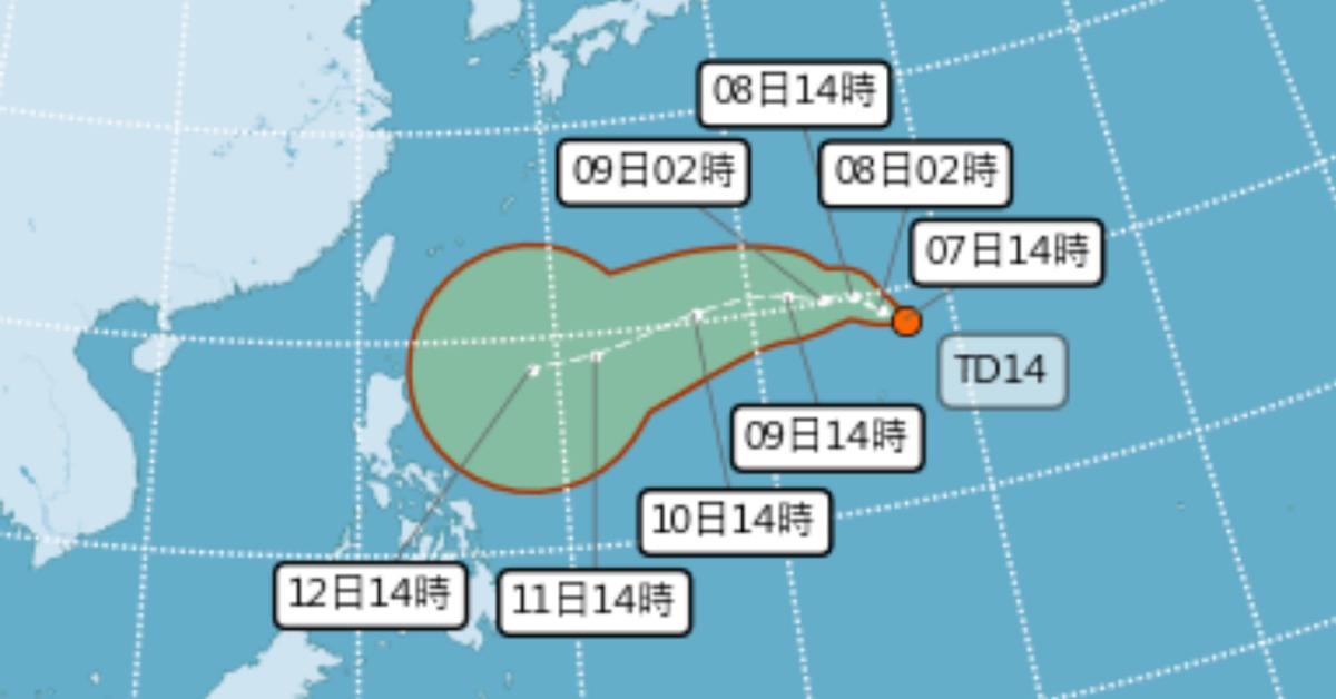 關島附近海面今(7日)生成熱帶性低氣壓TD14,不排除增強為颱風並在下週影響台灣。中央氣象署示警,「這天起」午後雷雨範圍擴大,中部以北須留意較大雨勢。