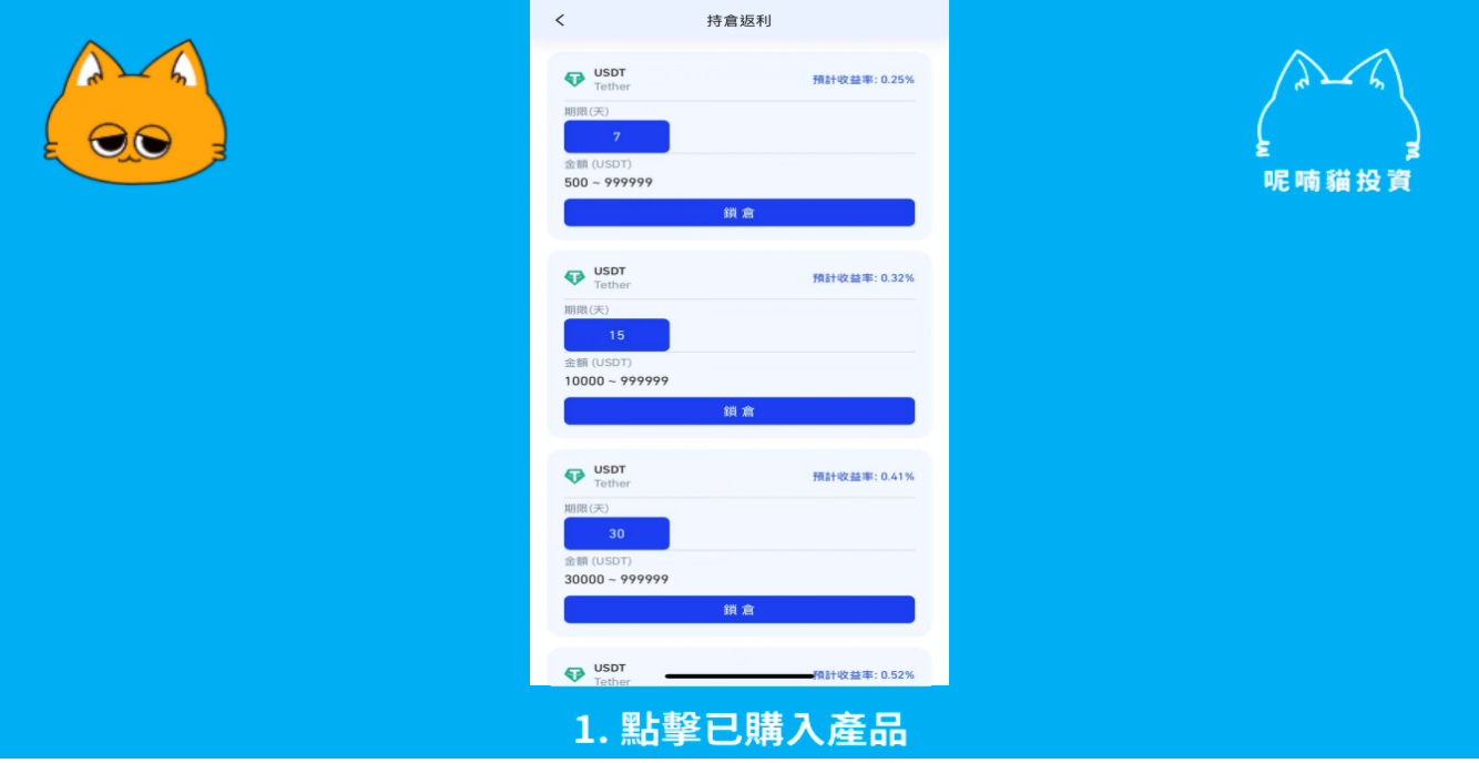 【首頁】→【持倉返利】→【選擇定期合約】→選擇投入幣種
