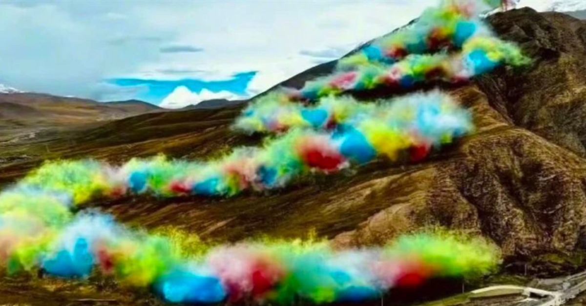五彩斑斕的煙花,像是一條巨龍般,在世界屋脊盤旋而下綻放開來,長達20分鐘的煙火秀表演,一幕接著一幕,在喜馬拉雅山上登場。現場擠滿網紅攝影師,捕捉煙火釋放的精彩瞬間,戶外品牌始祖鳥,與中國煙火專家蔡國強合作,19號在西藏日喀則,海拔5500公尺的山上,進行名為升龍的大型煙火表演秀,總共三個劇目,每一場煙火背後都象徵,對藏民以及山林的敬仰,甚至大量使用藏傳佛教,五色經幡的色彩演繹,卻遭到痛批是在破壞生態。