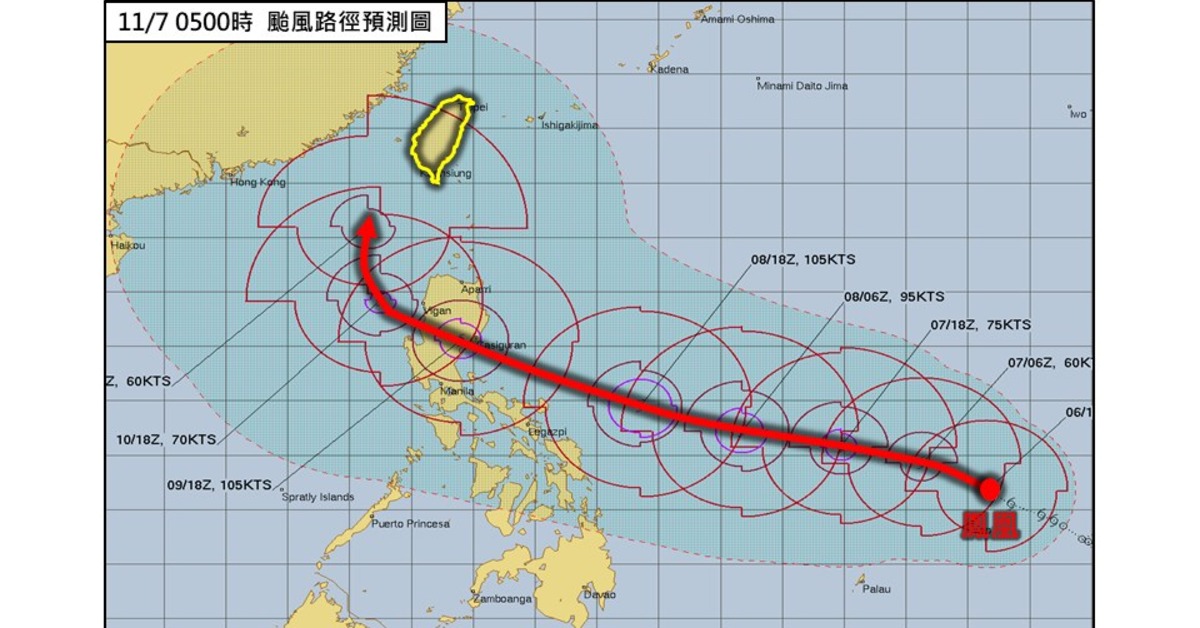其次,路徑預測顯示可能自台灣西側北上,不論是否登陸,這樣的走向在歷史上極為少見;第三,颱風整體環流結構穩定且強度維持時間長,顯示海溫與大氣條件異常配合,反映出氣候變遷的影響。