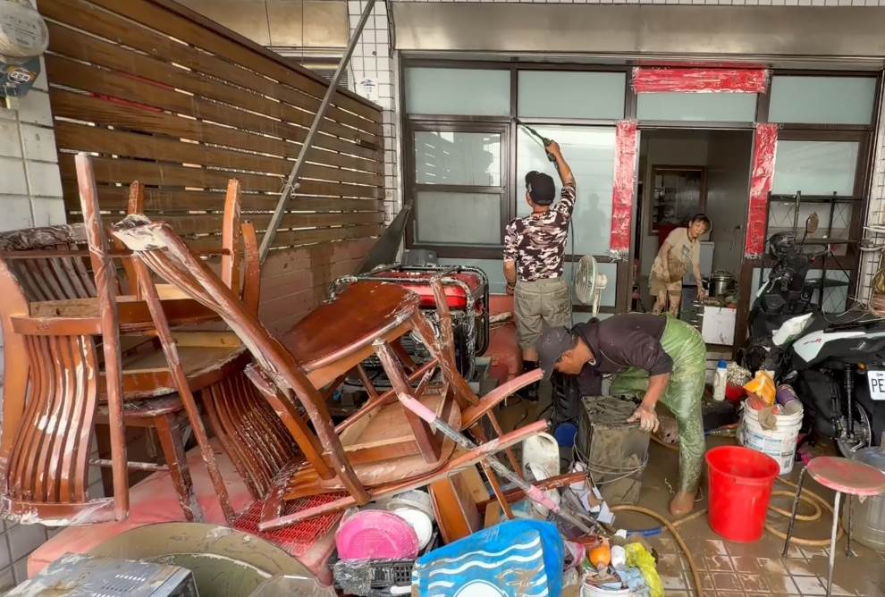 屋主坦言,透過監視器看到泥水灌進屋內的當下,那種感覺已經是「不知道該怎麼說」,只能想著發生了那就接受,家園能清理就清理,能守住家就守住,但想到以後大雨又會繼續淹,情緒依舊非常複雜。