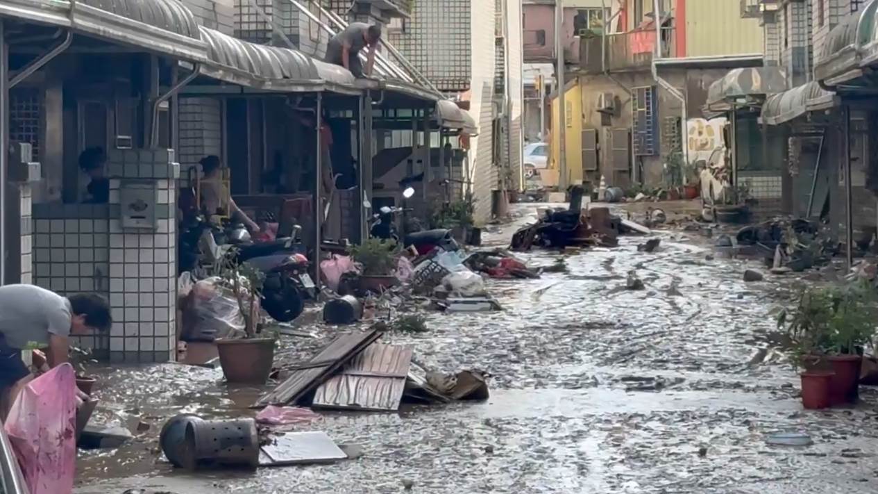 宜蘭經過一夜暴雨後,蘇澳等地區留下大片泥濘,許多住戶住家慘遭汙泥灌入,大量家具毀於一旦。居民一早忙著清理家園,部分巷道甚至必須動用重機具清理泥土。