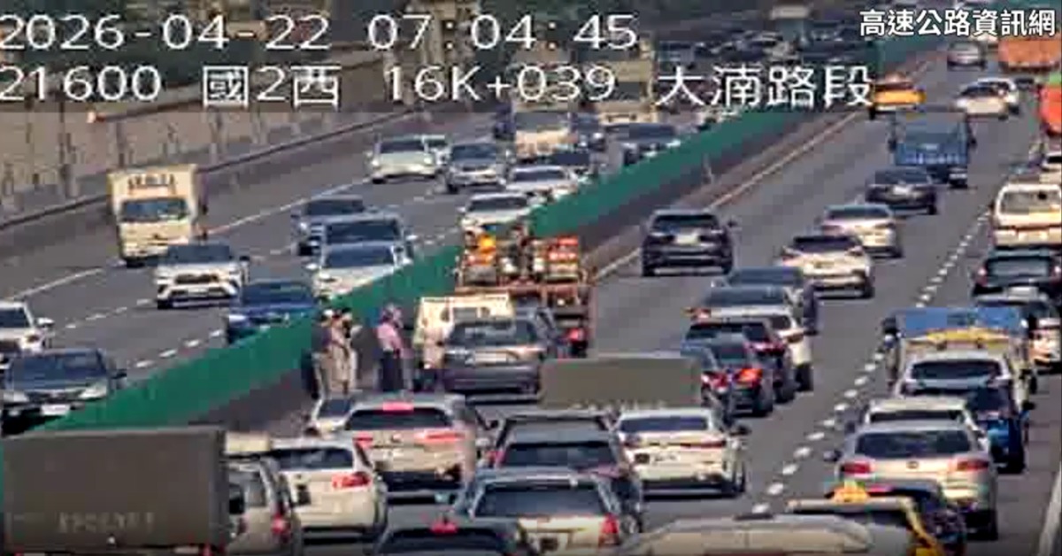 國道2號發生車禍。(圖/翻攝自國道即時影像)